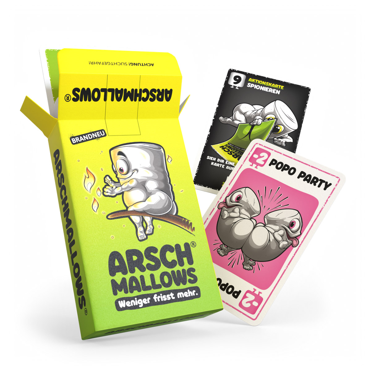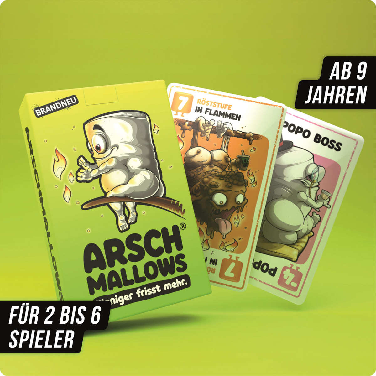 Das spannende Kartenspiel für Jung und Alt. Finde heraus, welche Werte sich unter deinen Karten verstecken und sichere dir clever die besten Arschmallows, um zu gewinnen. Also Feuer frei und besser nichts anbrennen lassen! Spaß garantiert!
