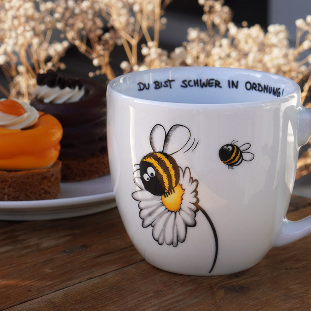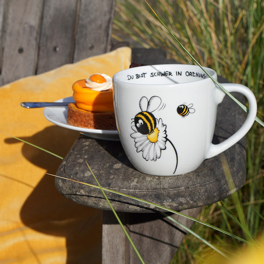 Tasse | Motiv Biene | Böhmisches Porzellan | Höhe: 8,6 cm Ø: 9,3 cm | Füllmenge 300 ml (so viel geht wirklich rein, und dann ist der Spruch noch zu lesen) | 330 g | Spülmaschinen- und Mikrowellenfest | ohne Dekoration
