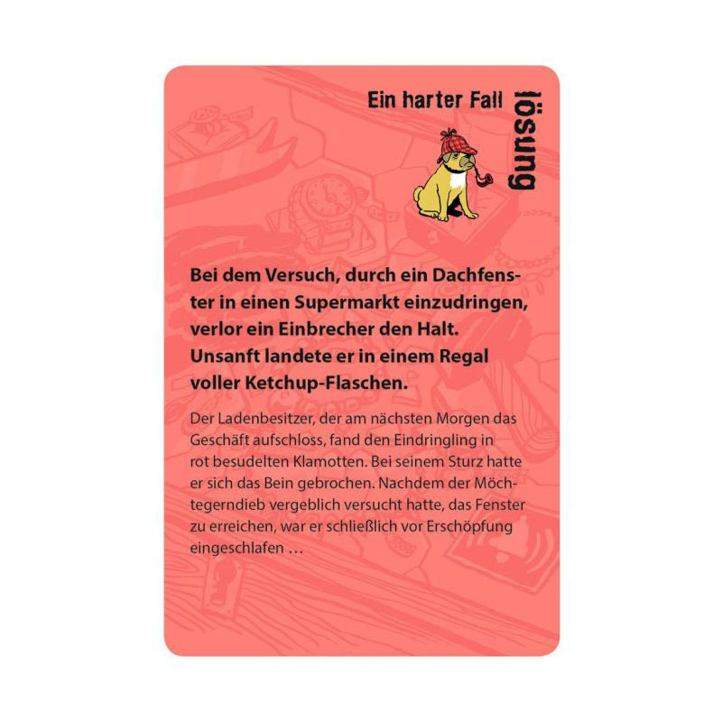 Pro Spiel wird einee Rätselkarte gelöst. Nur die Spielleitung kennt die Lösung und das Rateteam nähert sich dieser Schritt für Schritt durch Fragen, Raten und Tüfteln … wie gewohnt! Aber aufgepasst: Besonders clevere Fragen, die auf eine heiße Fährte führen, werden mit Punktechips belohnt. Der Ratefuchs, der das Rätsel löst, erhält zusätzlich 3 Punktechips. Wer am Ende des Spiels die meisten Punktechips gesammelt hat, gewinnt!