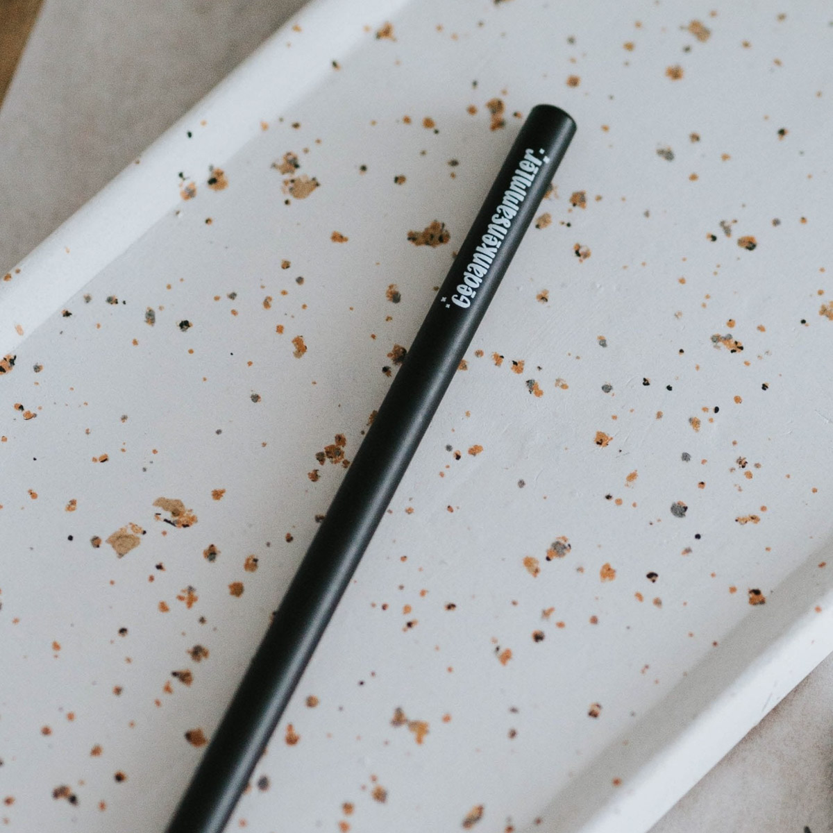Bleistift | Motiv “Gedankensammler” | rund | Durchmesser 7 mm | Härtegrad HB | Holzschaft schwarz | Tauchkappe in schwarz | ohne Dekoration