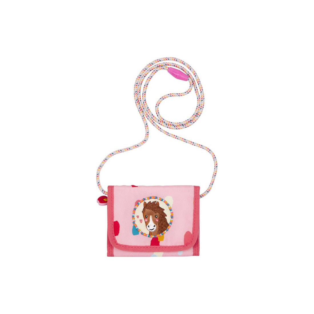 Willkommen auf dem Ponyhof: In diesem rosafarbenen Brustbeutel aus recyceltem Polyester mit zauberhaftem Pony-Motiv sind Taschengeld und Busfahrkarte sicher verstaut. Mit Plüschapplikationen und liebevollen Stickereien. Dank abnehmbarer Kordel kann der Brustbeutel um den Hals getragen sowie als Portmonee genutzt werden. Für echte Pony-Fans!