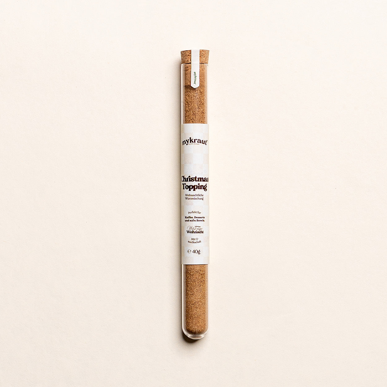 Christmas Topping | Gewürz im Reagenzglas | Winter Allrounder | Zimtig, weihnachtliches Topping | 40g | 100% natürlich und plastikfrei | ohne Dekoration