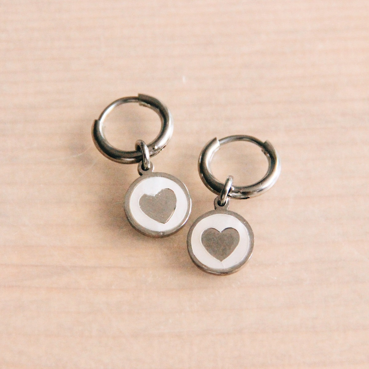 Ohrringe | Creolen in Silber | mit Herz (rund) in Silber | Material: Edelstahl (verfärbt sich nicht) | ohne Dekoration