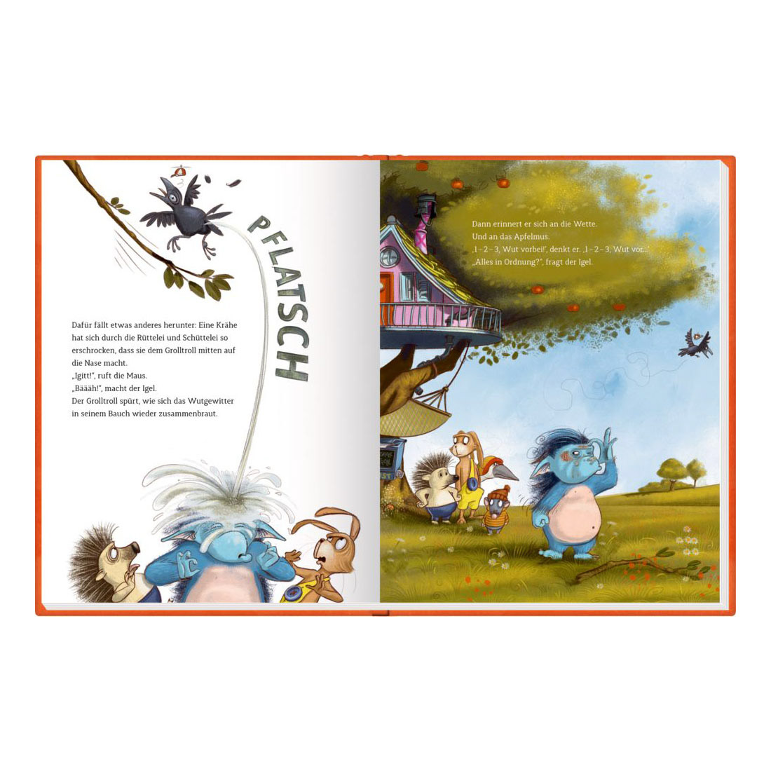 Es könnte alles so schön sein! Wäre da nicht die blöde Hütte, die immer wieder zusammenkracht, oder der dumme Baum, von dem einfach kein Apfel herunterfallen will … Das macht den kleinen Troll wütend. Er ist ein Troll, der grollt. Ein Grolltroll! Sehr zum Leidwesen seiner Freunde, die irgendwann entnervt ihre Koffer packen. Ob der kleine Troll das wieder gutmachen kann…? Den Frust und die Wut, wenn Dinge nicht so laufen, wie man es sich wünscht, kennt jeder. Auch der Grolltroll. Was aber tun, wenn die ganz große Wut kommt und uns einfach überrollt? Unser Bilderbuch hilft, ihr spielerisch ein Ende zu setzen.