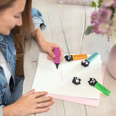 Die vier leuchtenden Farben sorgen für klare Hervorhebungen, während die abnehmbaren Katzenköpfe als praktische Schutzkappen dienen. Verpackt in einer stylischen Geschenkbox, ist dieses Set auch eine tolle Geschenkidee für Katzenfans!