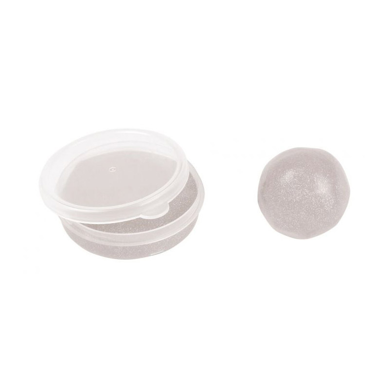 Glitzernde Springknete mit Silberglitzer | 6 verschiedene Farben: Blau, Gelb, Pink, Türkis, Violett, Weiß | in Dose verpackt | Ø 6,8 cm, Höhe ca. 2 cm | ohne Dekoration