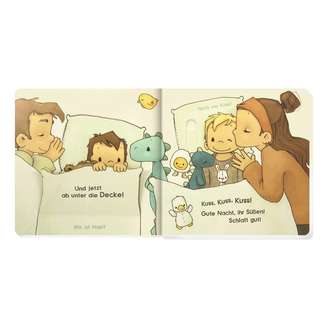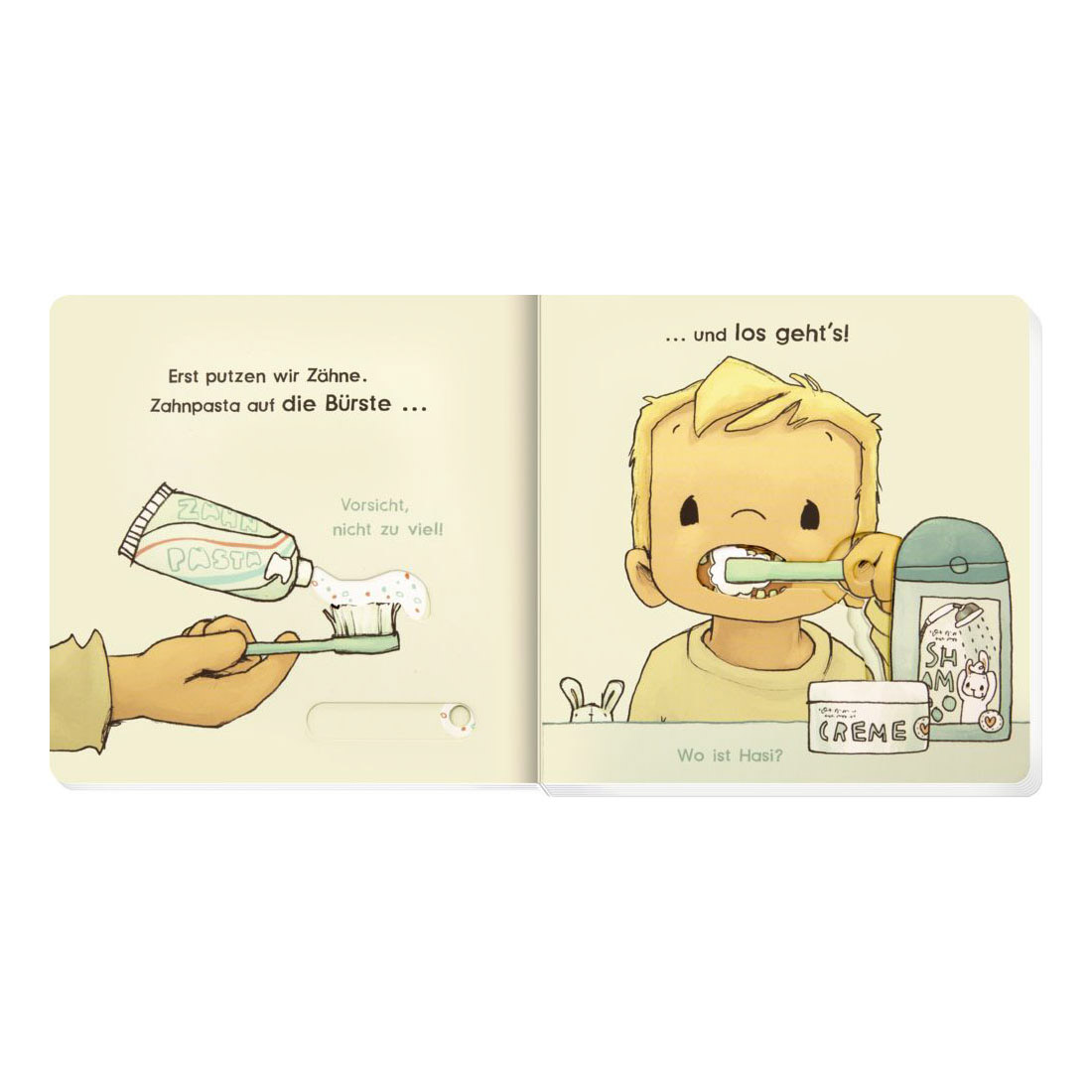 „Zähne putzen, Pipi machen, ab ins Bett … Sind auch alle Kuscheltiere da?“ – Ein interaktives Pappbilderbuch für das perfekte Abendritual!