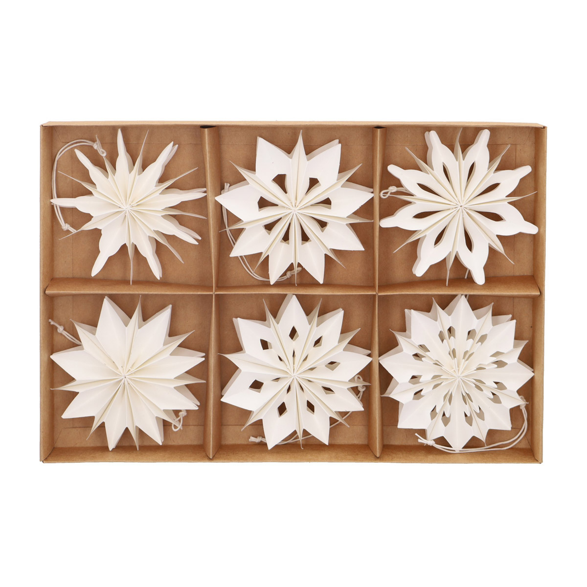 Papiersterne in Weiß | 10 cm Durchmesser | 6 Motive | zum Aufhängen | ohne Dekoration
