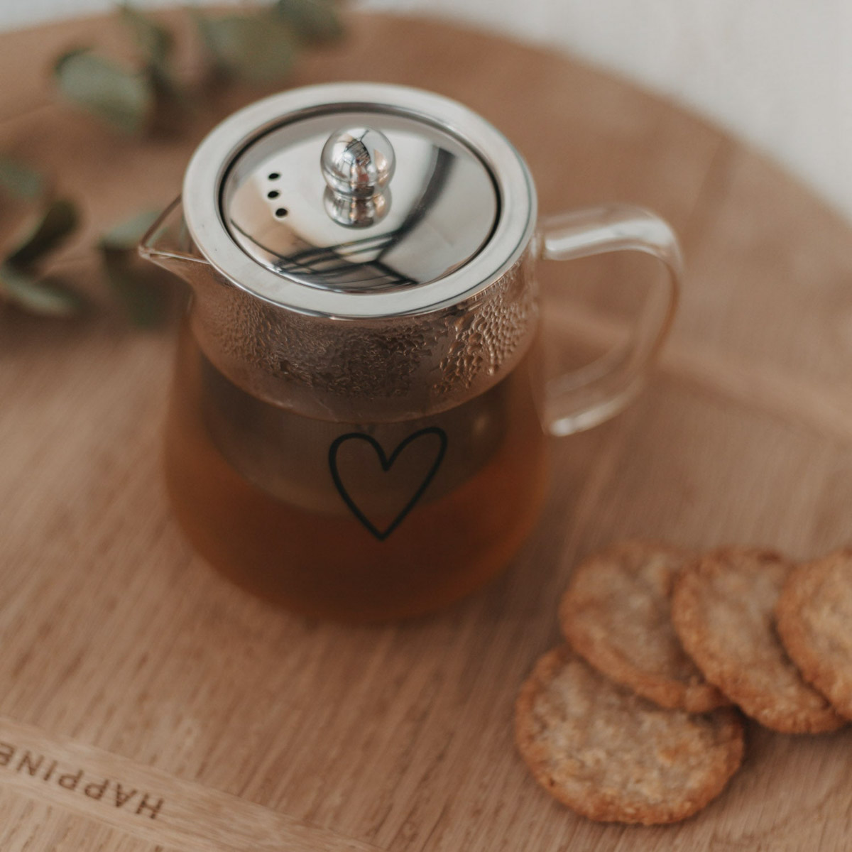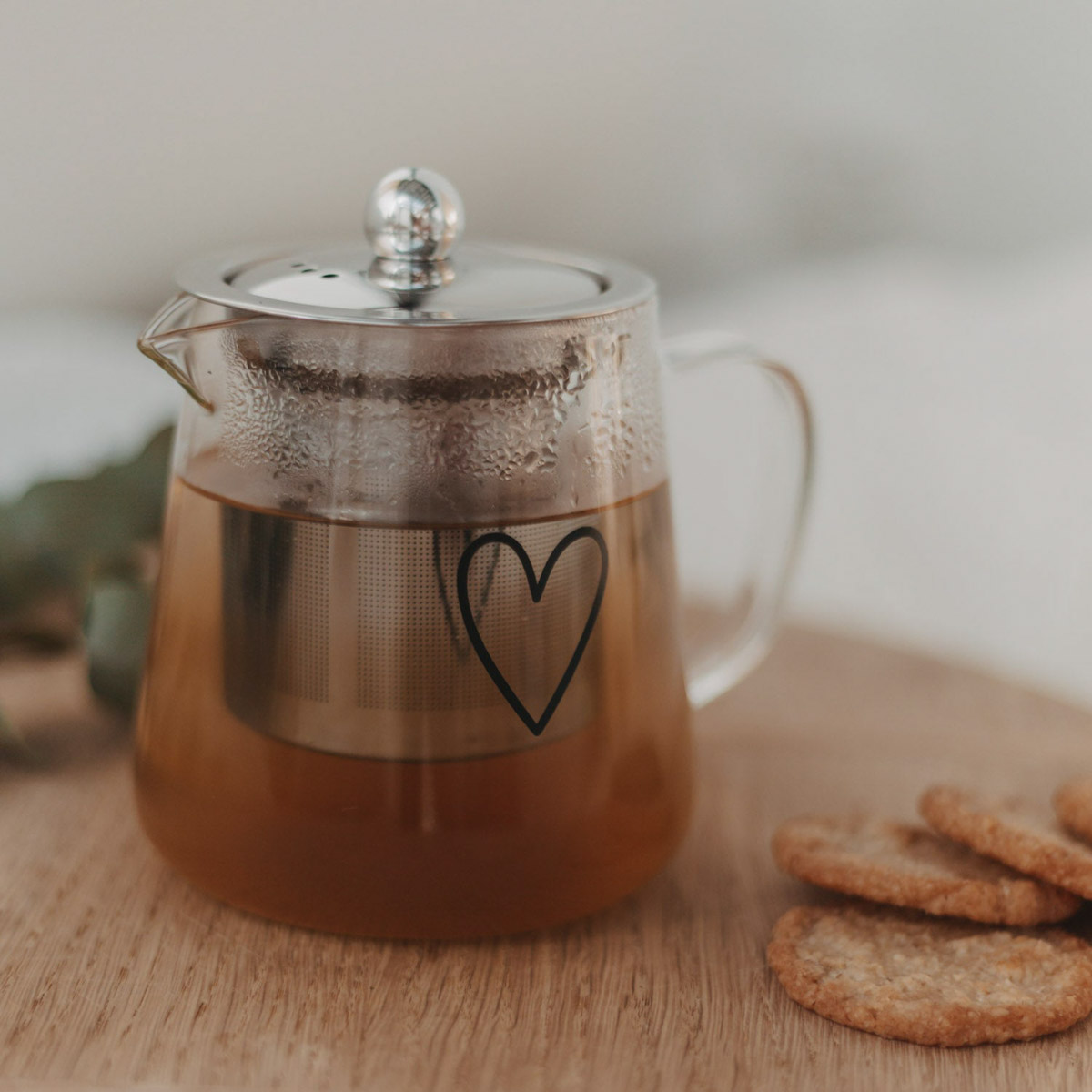 Verwandle deine Teemomente in kleine Auszeiten voller Wärme und Stil – mit der Teekanne Herz 550 ml. Das schlichte, klare Glasdesign wird durch ein großes, schwarzes Herz veredelt, das liebevolle Akzente setzt und gleichzeitig modern wirkt. Ob als dekorativer Blickfang auf deinem Tisch oder als funktionaler Begleiter im Alltag – diese Teekanne verbindet Ästhetik mit Alltagstauglichkeit.