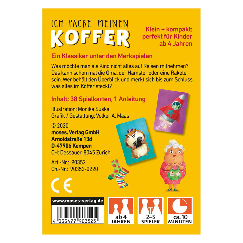Ich packe meinen Koffer | Kartenspiel für Kinder | ca. 7 cm x 10 cm x 2 cm (B x H x T) | Altersempfehlung ab 4 Jahren | 2 bis 5 Spieler | Spielzeit ca. 10 Minuten | ohne Dekoration