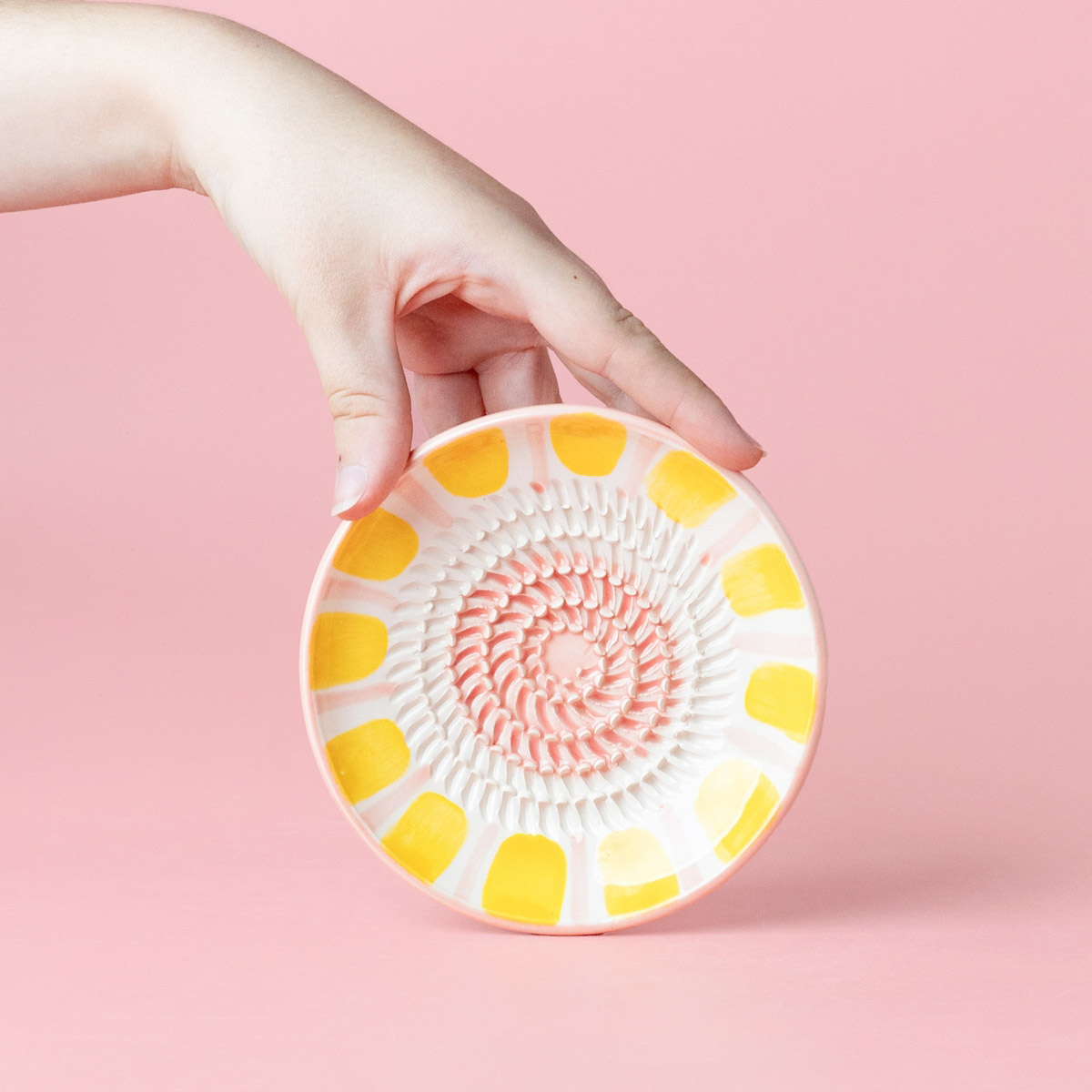 Die Keramikreibe ist der perfekte Küchenhelfer zum Reiben von einzelnen Zutaten wie Knoblauch, Ingwer, Schokolade Parmesan und Muskat sowie zum Zubereiten und Servieren von kleinen Gerichten. Diese werden von der spanischen Marke Alfar Tierra Cocida auf traditionelle Weise von Hand gefertigt und bemalt.