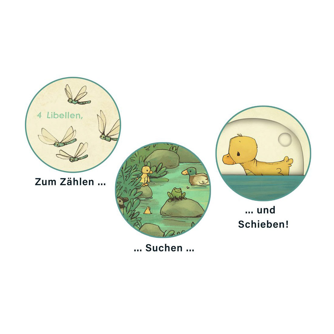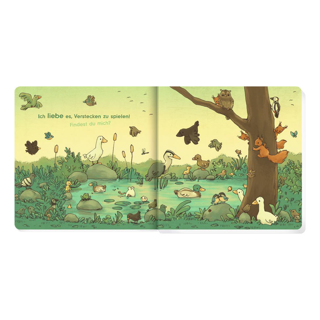 Ein besonderes Pappbilderbuch mit liebevoll gezeichneten Illustrationen von Joëlle Tourlonias und einer niedlichen Vorlesegeschichte über ein kleines Entenküken.