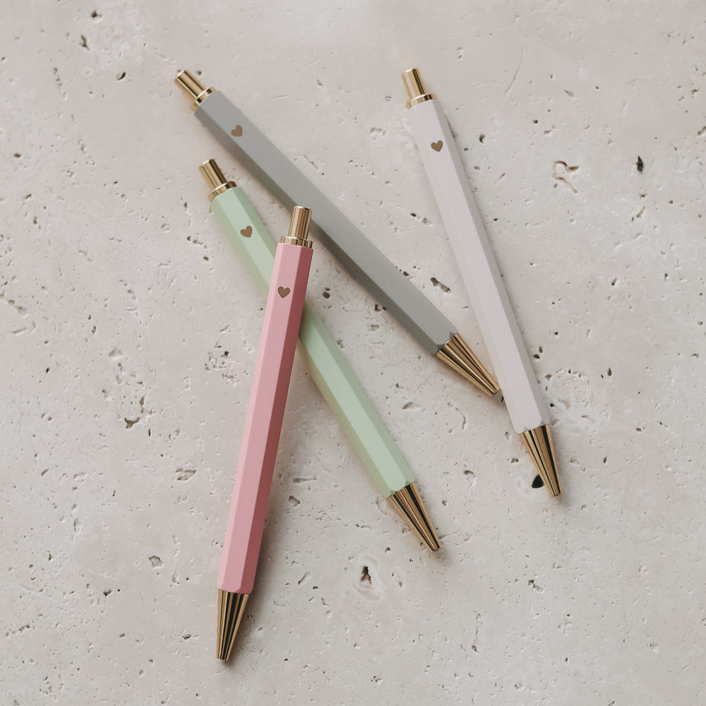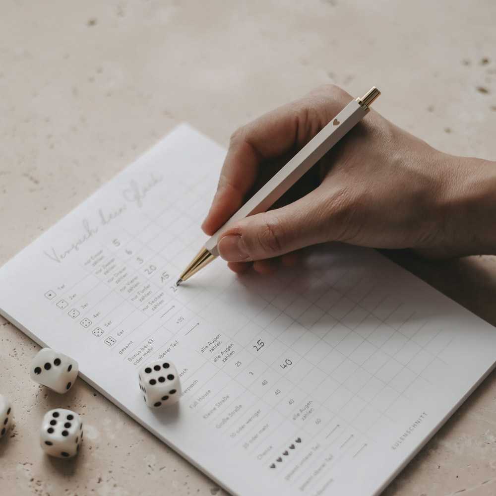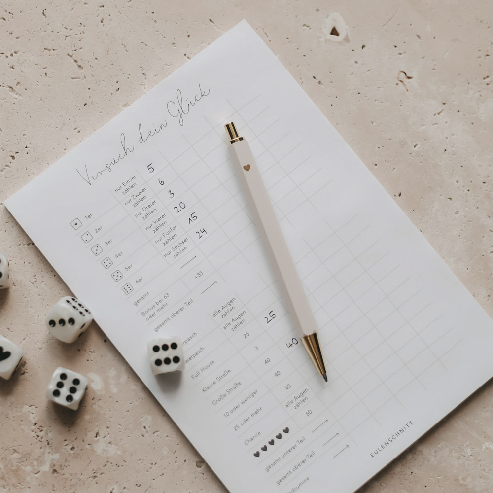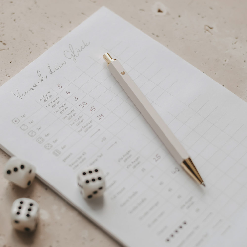 Ob im Meeting, beim Schreiben deiner Gedanken oder als schickes Accessoire auf deinem Schreibtisch – dieser Kugelschreiber bringt Freude und Stil in jede Situation. Perfekt kombinierbar mit unseren passenden Notizblöcken für noch mehr Schreibvergnügen!