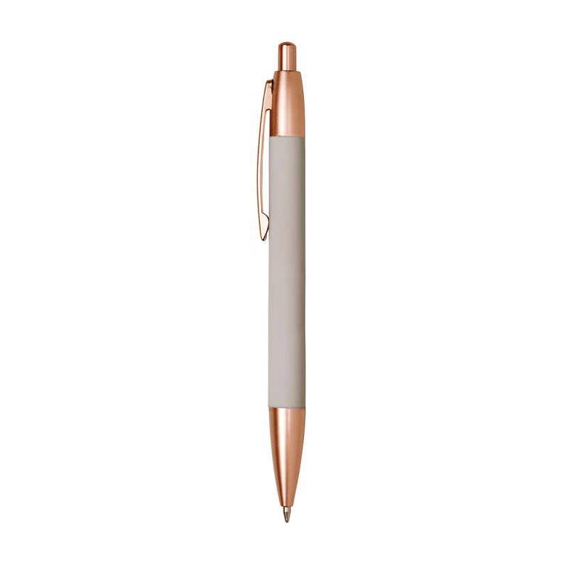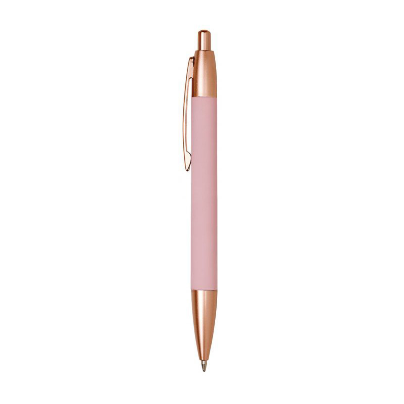 Dieser Kugelschreiber liegt im Trend! Roségold ist nämlich total angesagt. Mit dem Gehäuse in der Trendfarbe sieht der Stift edel und hochwertig aus. Ein weiteres Highlight: Mit der Rubbertouch-Haptik am Griffel liegt der Kugelschreiber besonders gut in der Hand und verrutscht nicht. In sechs passenden Nuancen ist für jeden ein Stift dabei. Die schwarze Mine kann ausgewechselt werden, sodass man noch lange Freude an diesem Stift hat. Ein trendiges und schönes Schreibaccessoire!