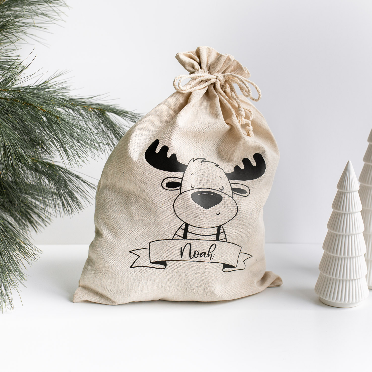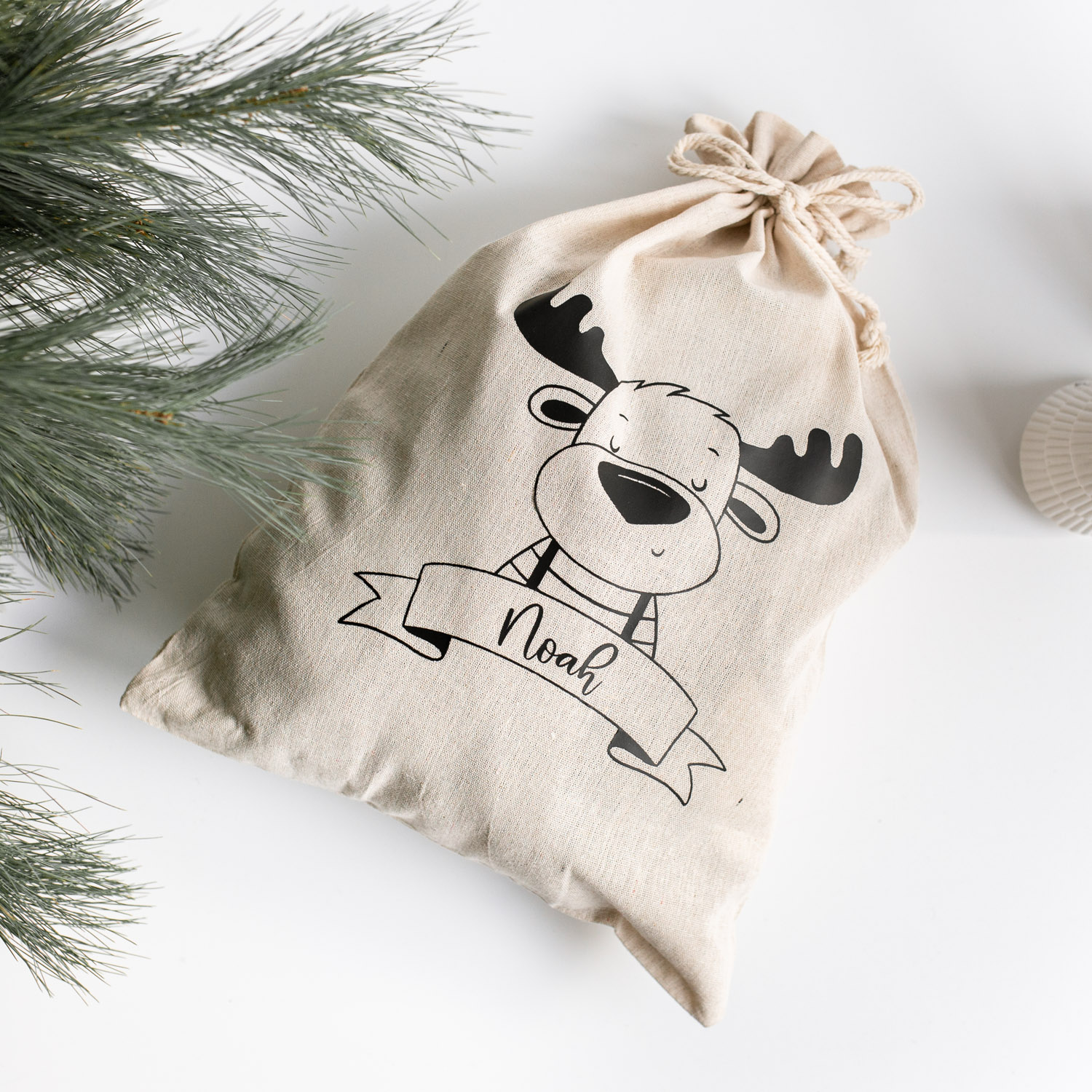 Diese nachhaltige Geschenkverpackung eignet sich hervorragend zum Verpacken von Weihnachtsgeschenken. Sie ist praktisch, zeitlos und jederzeit wiederverwendbar. Der Geschenksack, welchen es in vier verschiedenen Größen erhältlich ist, wird mit dem Wunschnamen personalisiert.