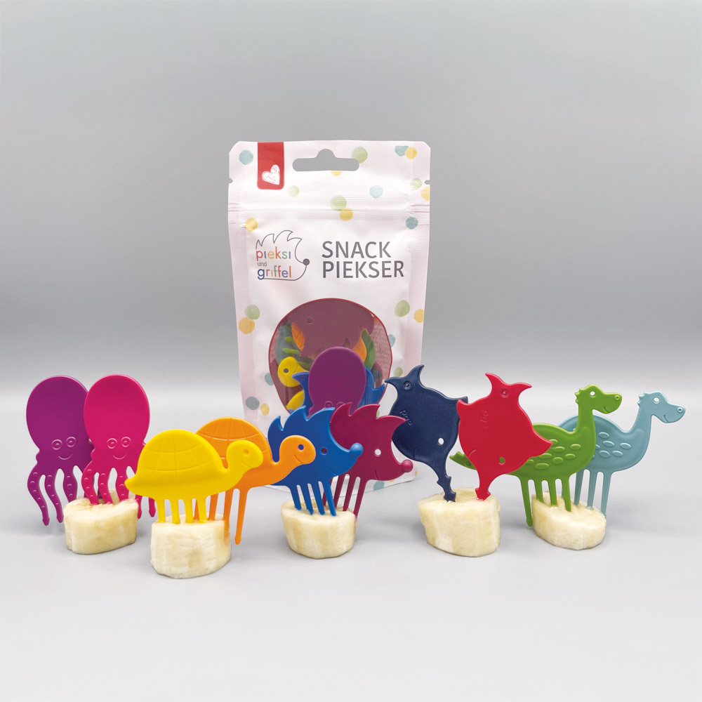 Die Snack Piekser von der Marke “Pieksi & Griffel” eignen sich perfekt als alltäglicher Begleiter! Sie sind groß genug, damit auch kleine Hände sie gut greifen können, das Material ist griffig und sie sind nahezu unkaputtbar!
