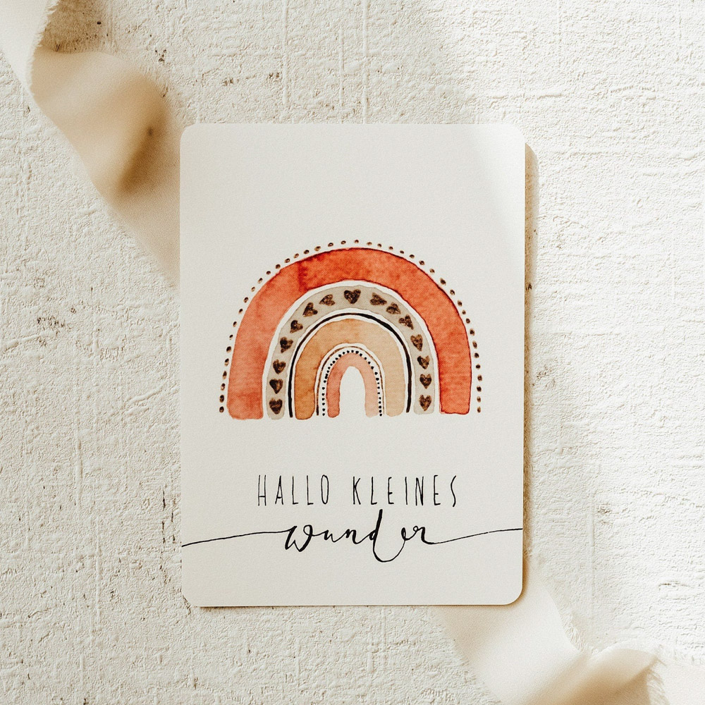 Postkarte | Motiv: Hallo kleines Wunder Regenbogen | A6 (10,5 x 14,8 cm) | Gedruckt auf hochwertigem Naturpapier 324 g/m² | Abgerundete Ecken | Wunderschöne matte Oberfläche | ohne Dekoration