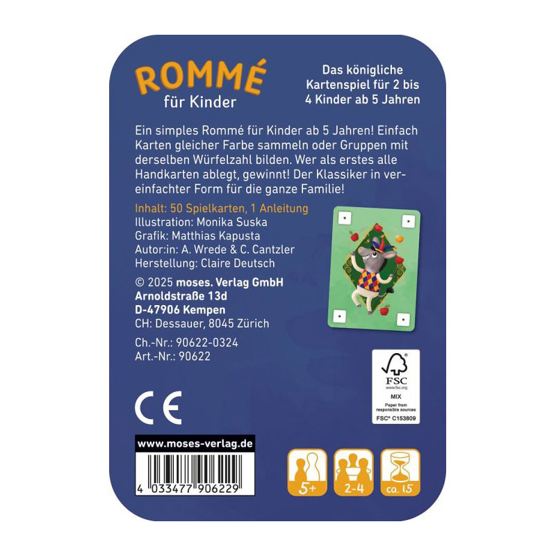 Mit Rommé für Kinder wird der Klassiker für junge Spielefans zugänglich. Die liebevoll illustrierten Karten erleichtern den Einstieg und sorgen für jede Menge Spielspaß.