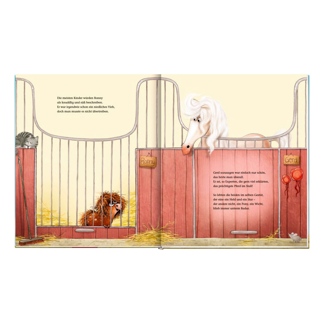 Pony Ronny hat es nicht leicht neben Gerd, dem Pferd. Gerd ist groß, galoppiert anmutig, hat seidiges Fell und selbst sein Futter ist um Klassen besser als Ronnys.