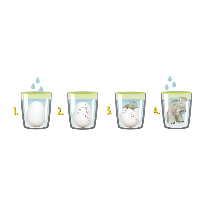 Das Ei einfach ins Wasser legen und nach ein paar Tagen schlüpft ein kleiner Dino und wächst noch einige Tage weiter.
