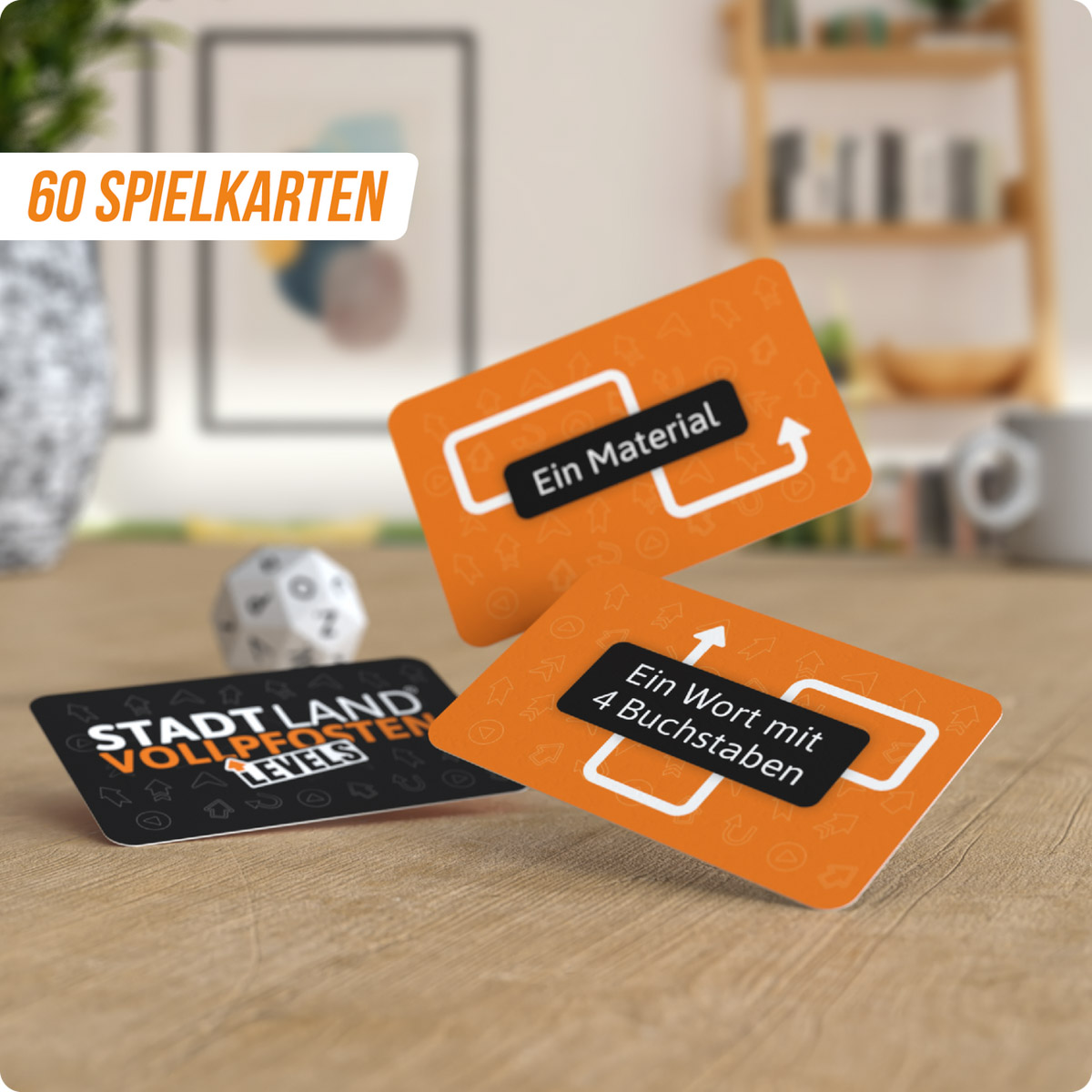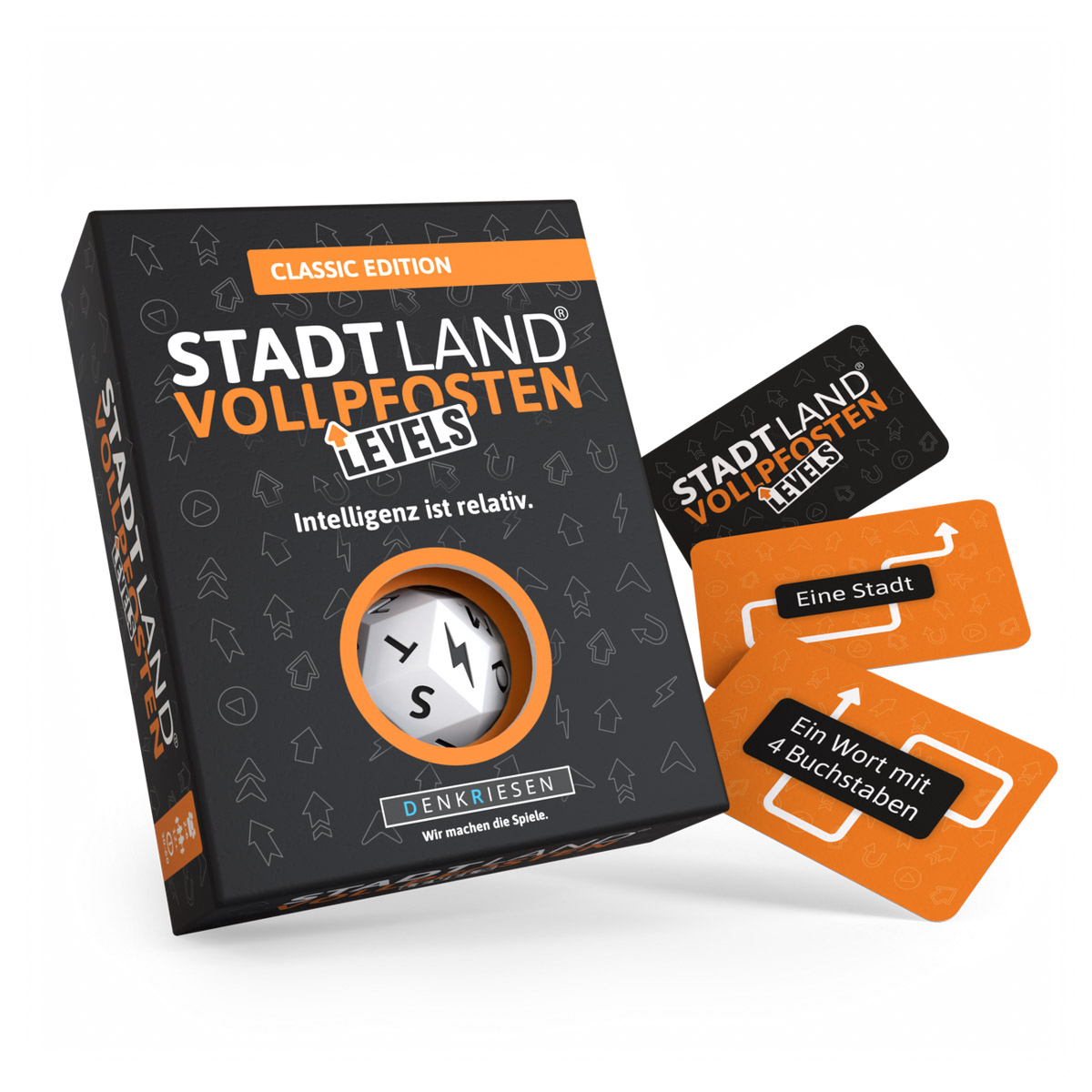 Erlebe mit “STADT LAND VOLLPFOSTEN – Levels”, der neuesten Variante des Klassikers ‘Stadt Land VOLLPFOSTEN’, actionreiche Spielrunden für 2-6 Spieler ab 12 Jahren, bei denen ihr euch durch 4 Levels würfelt und alle 60 Spielkarten ablegt, um zu gewinnen – ein Spaß für Freunde und Familie mit einer Spielzeit von ca. 30-60 Minuten.