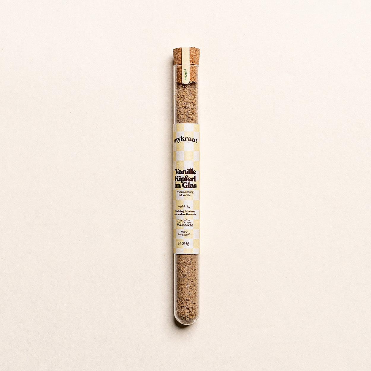 Vanillekipferl im Glas | Gewürz im Reagenzglas | Für Desserts und Frühstück | Wie Vanillekipferl als Topping | 29g | 100% natürlich und plastikfrei | ohne Dekoration
