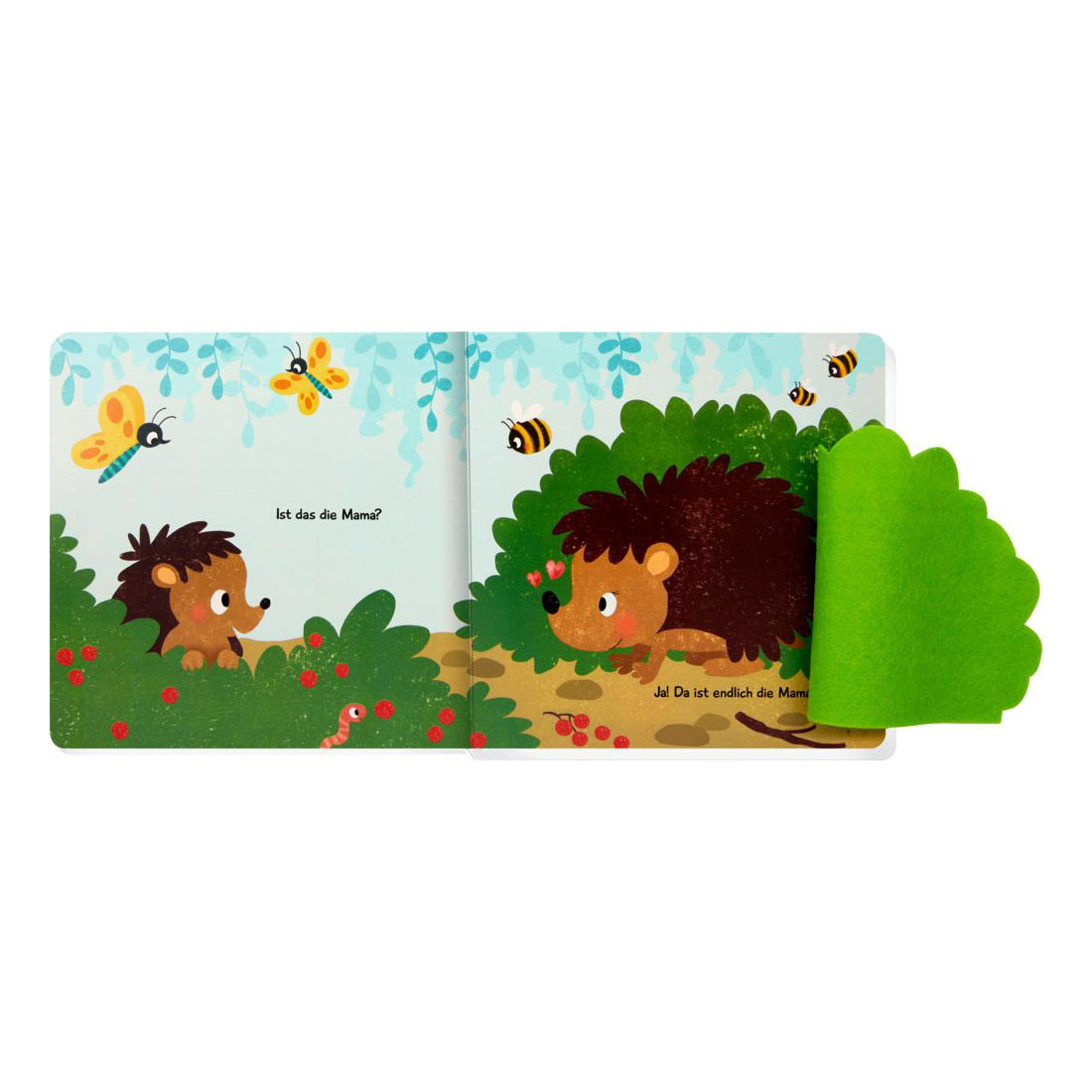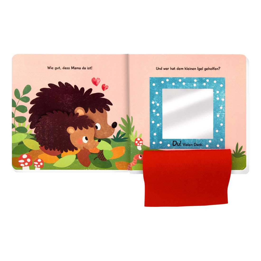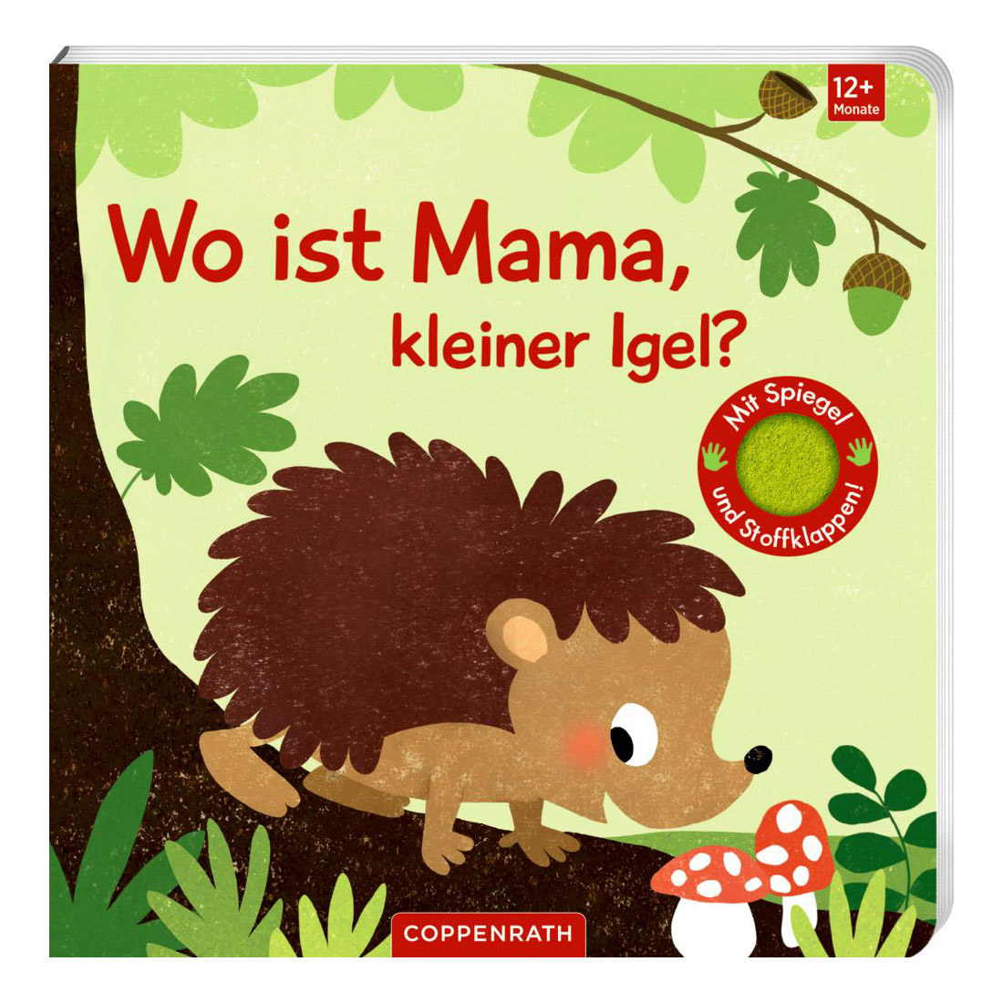 Pappbilderbuch | “Wo ist Mama, kleiner Igel?” | Reihe: Fühlen und die Welt begreifen | Altersempfehlung: ab 12 Monaten | Seiten: 12 | Format: 18,5 x 18,5 | Cover: Pappe | Einband: mit Stanze | Ausstattung: mit fünf Filzklappen und Spiegel | Sabine Kraushaar (Illustration) | ISBN: 978-3-649-64803-1 | ohne Dekoration