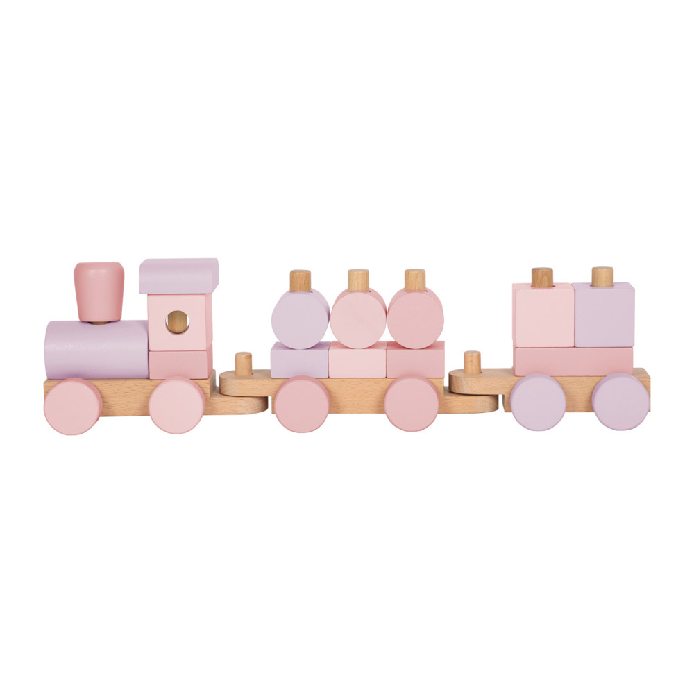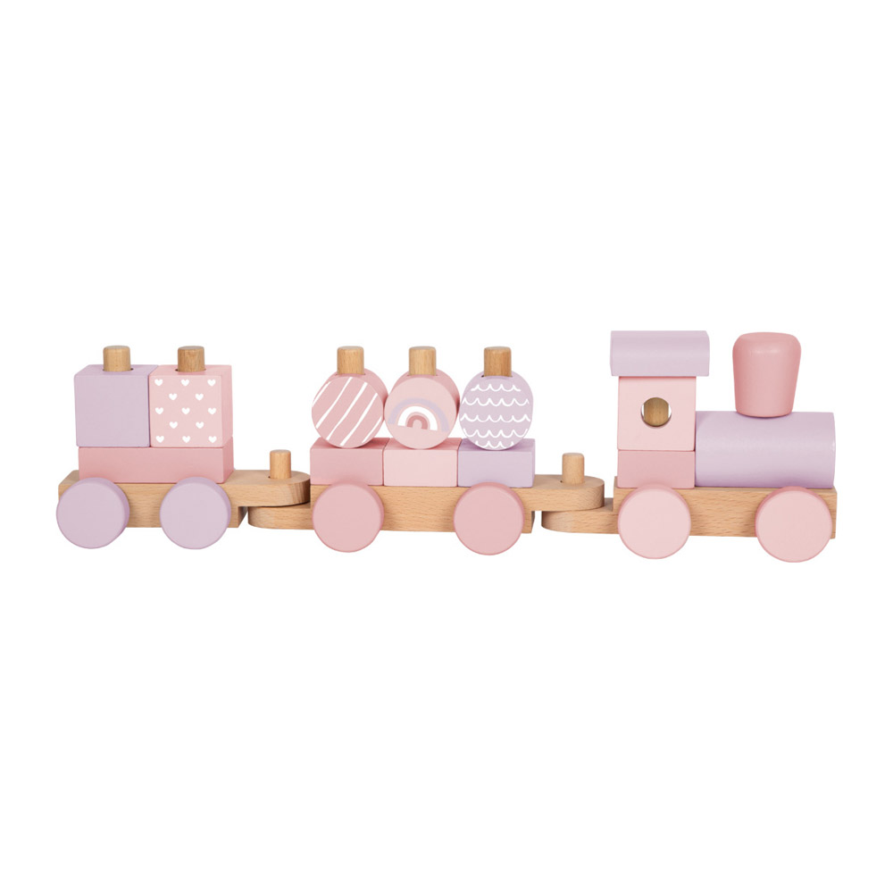 Mit 14 liebevoll gestalteten Steckelementen, einer Lok und zwei Waggons lädt er zum Stapeln, Stecken und Spielen ein. Die Steckelemente lassen sich beliebig kombinieren und können auch separat als Holzbausteine genutzt werden – für noch mehr kreative Bauideen. Die zarten Farben dieses vielseitigen Steckspielzeugs und der hohe Anteil naturholzfarbener Elemente machen den Spielzug ganz nebenbei auch zu einem dekorativen Hingucker im Kinderzimmer – ideal zum Spielen oder als Geschenk zur Geburt und Taufe!