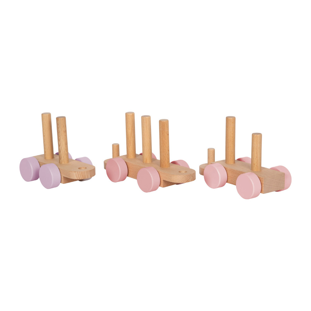 Durch die vielseitigen Steckmöglichkeiten fördert das Steck- und Stapelspiel die motorischen Fähigkeiten und die Hand-Augen-Koordination ganz spielerisch. Hergestellt aus stabilem Holz und gestaltet in zarten Farben mit einem modernen Design, ist der Holzzug ein echter Blickfang. in Zug, der durch seine Vielseitigkeit überzeugt: Ob als pädagogisches Spielzeug oder dekoratives Element – er bietet garantiert langanhaltenden und abwechslungsreichen Spielspaß!